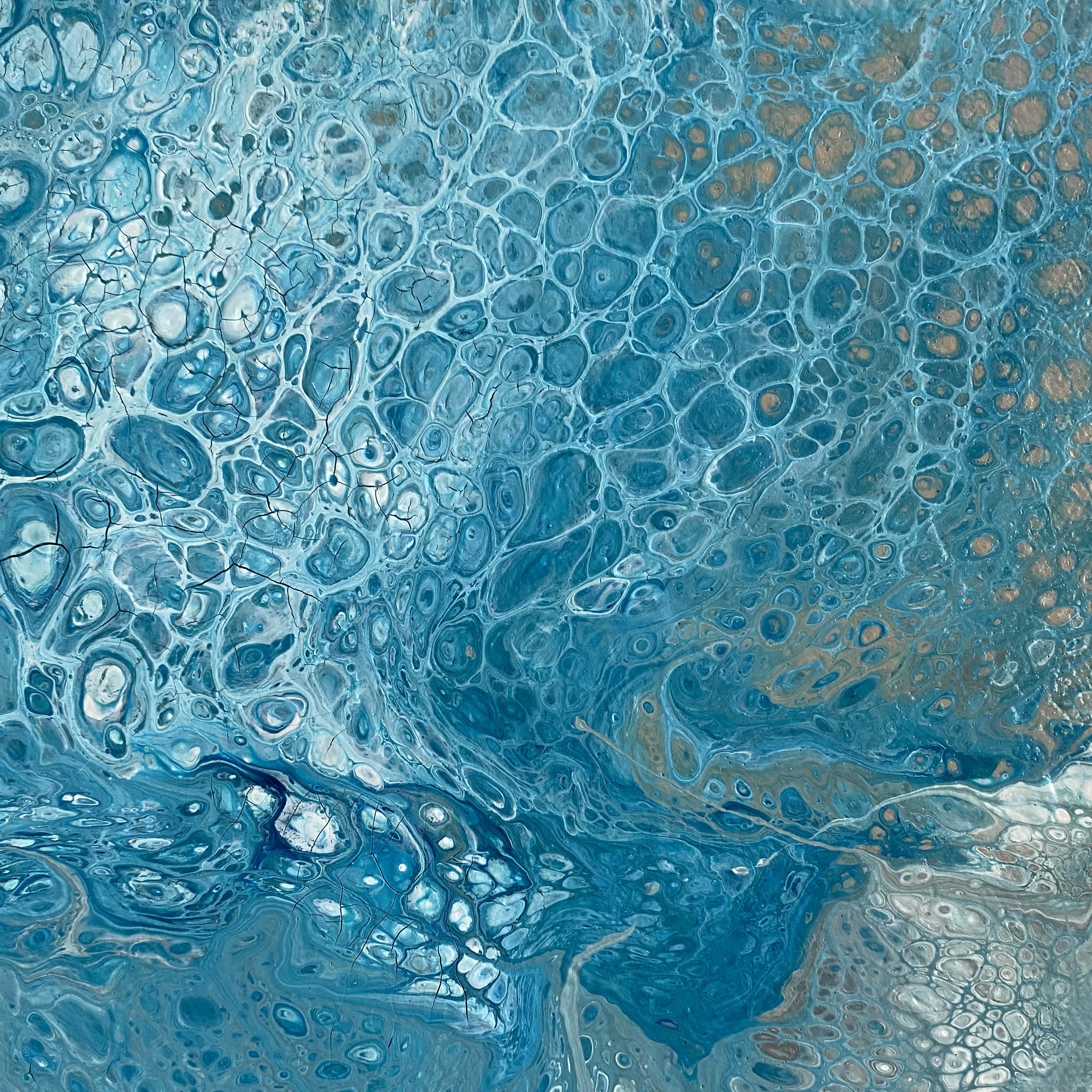 アクリル絵の具、ポーリングメディウム、シリコンオイル使用。