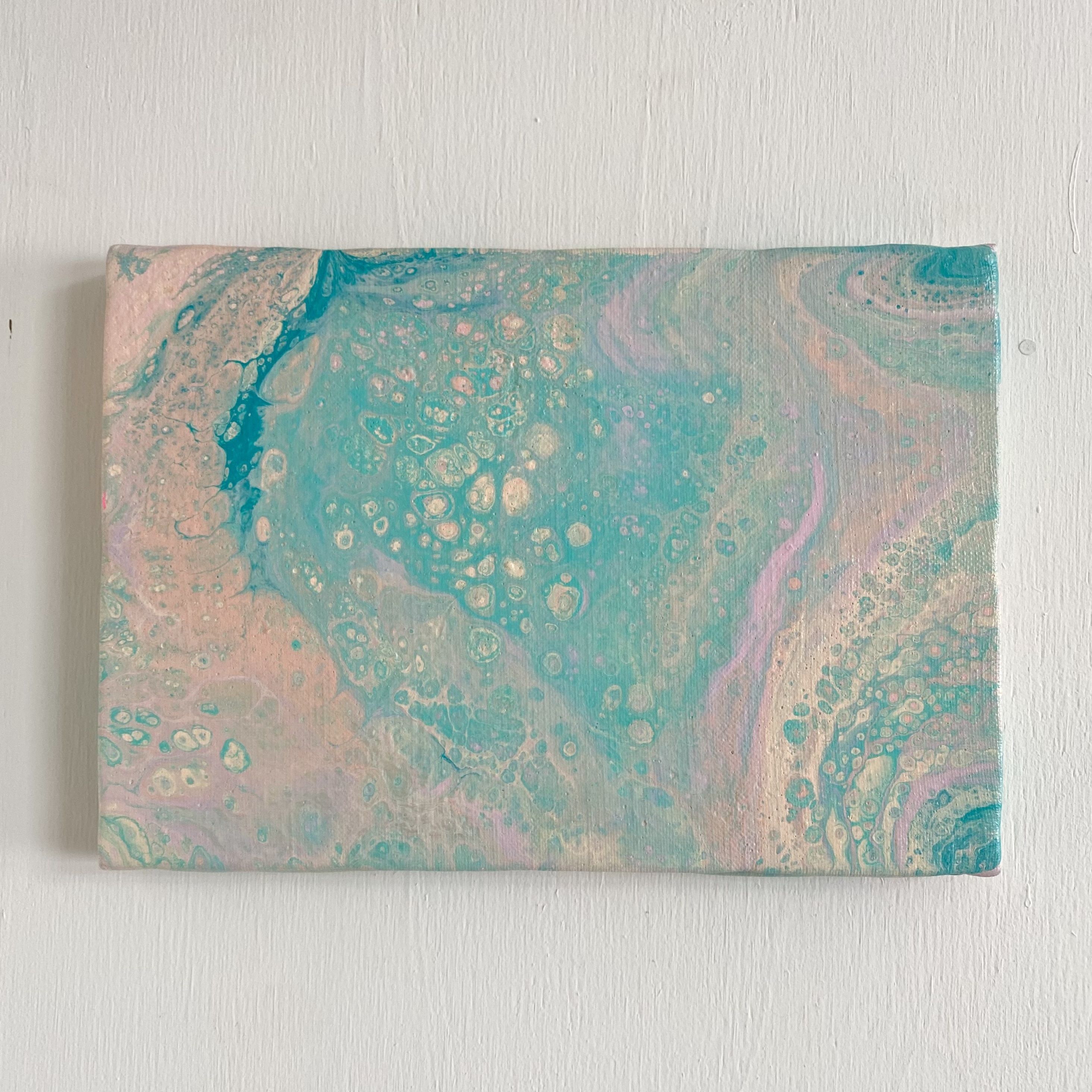 アクリル絵の具、ポーリングメディウム、シリコンオイル使用。