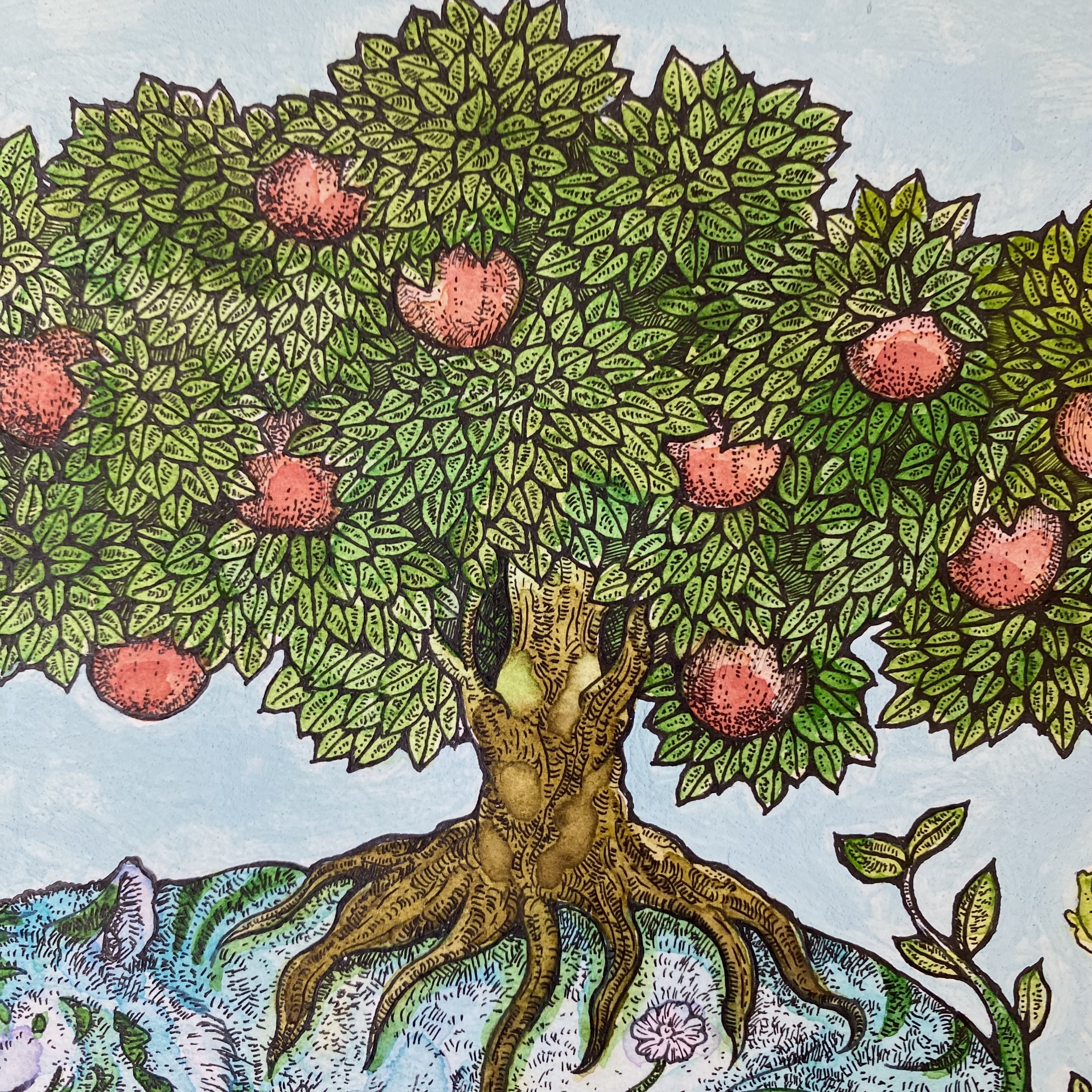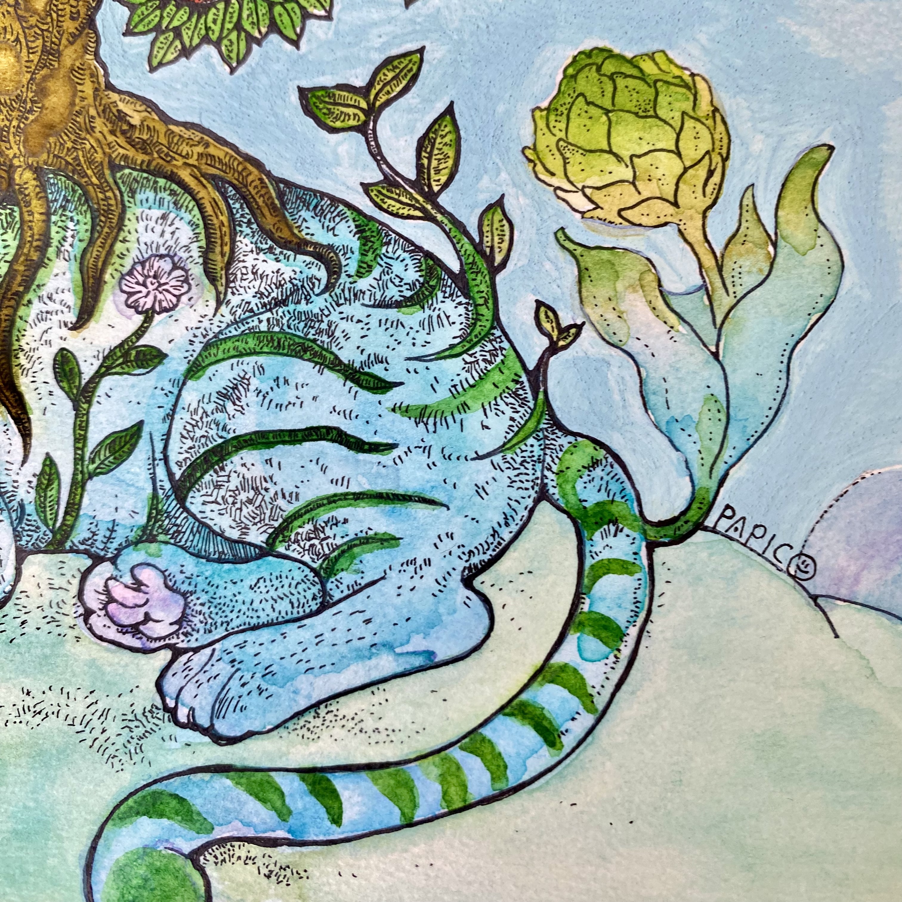 ヴィファール水彩紙、透明水彩絵の具使用。