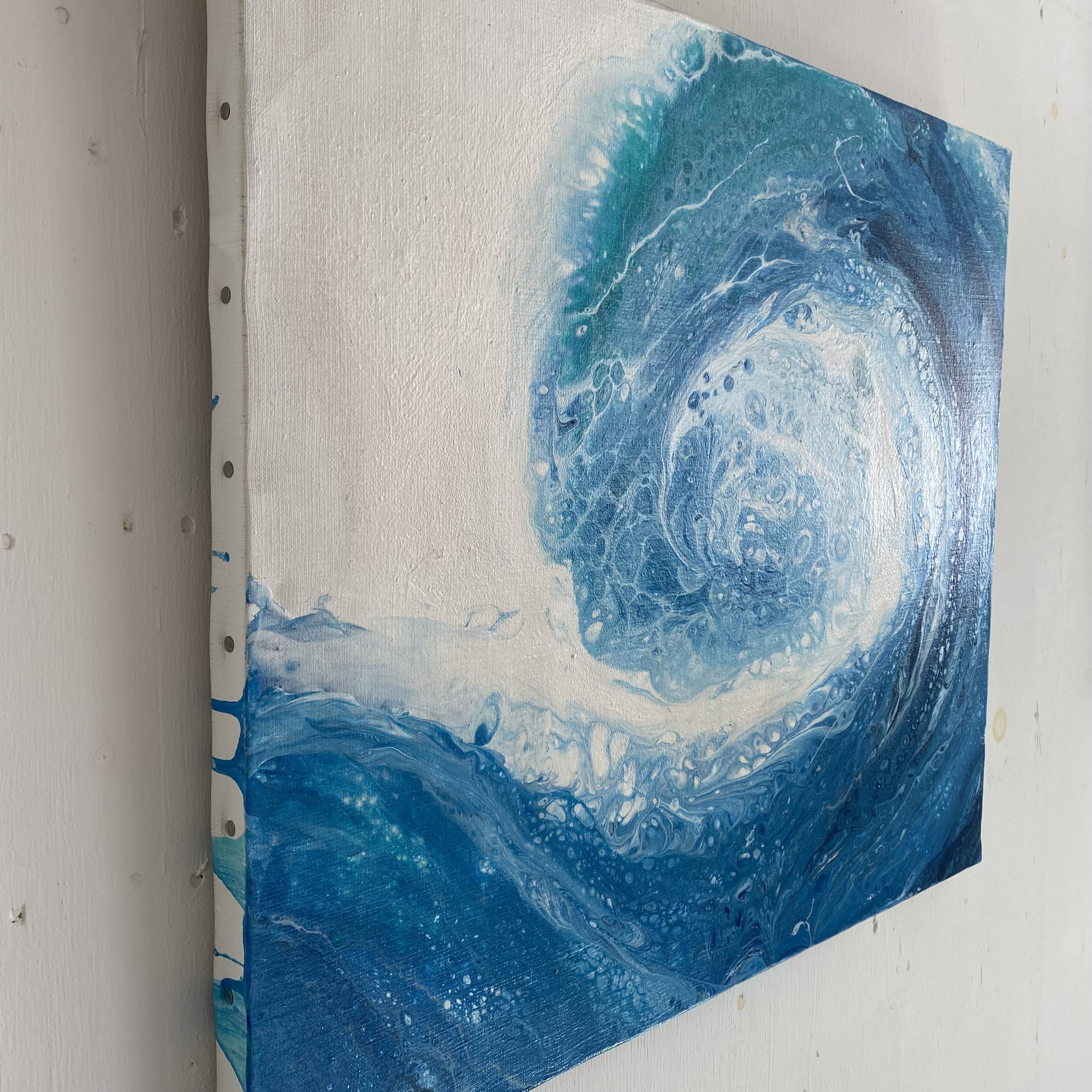 アクリル絵の具、ポーリングメディウム、シリコンオイル使用。
