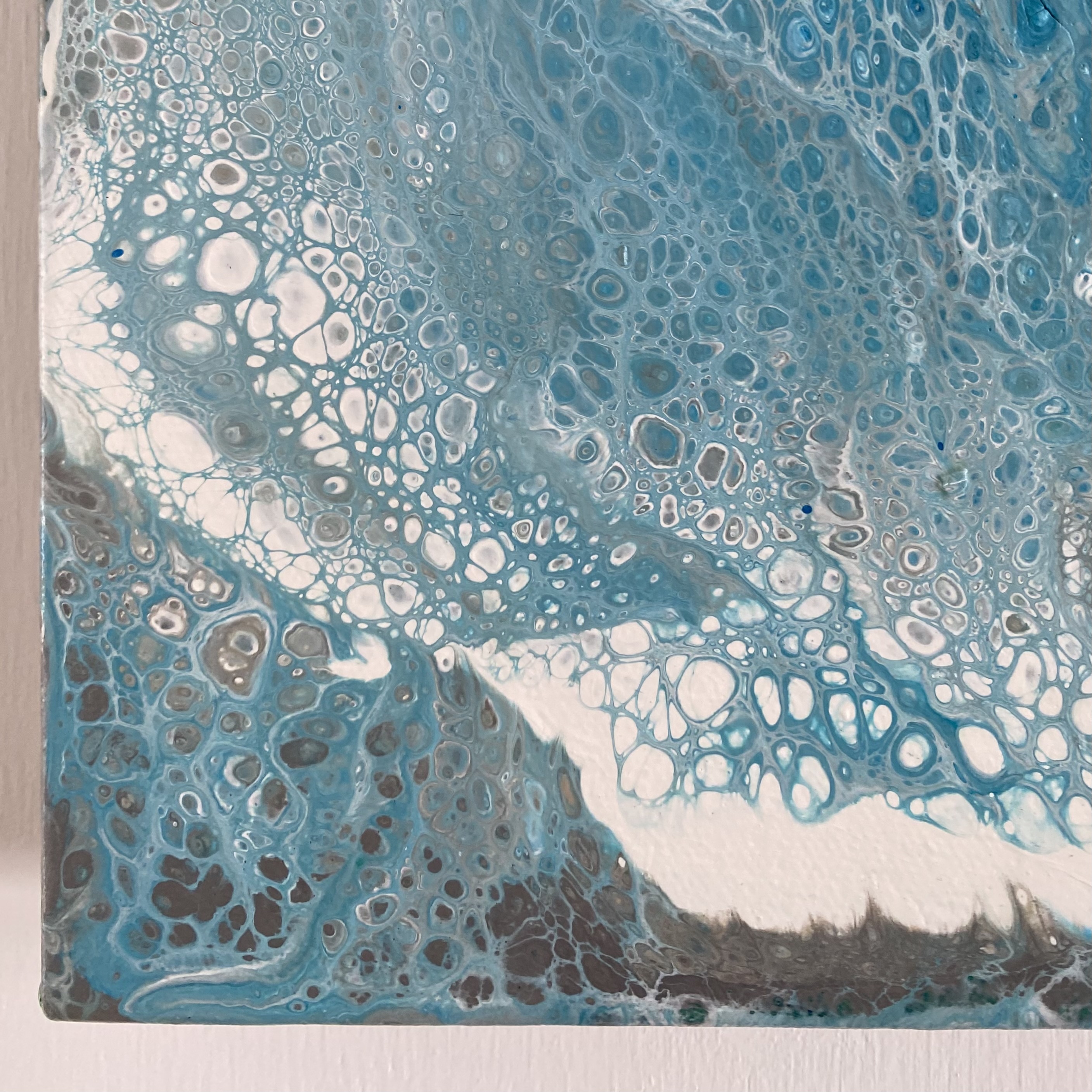 アクリル絵の具、ポーリングメディウム、シリコンオイル使用。