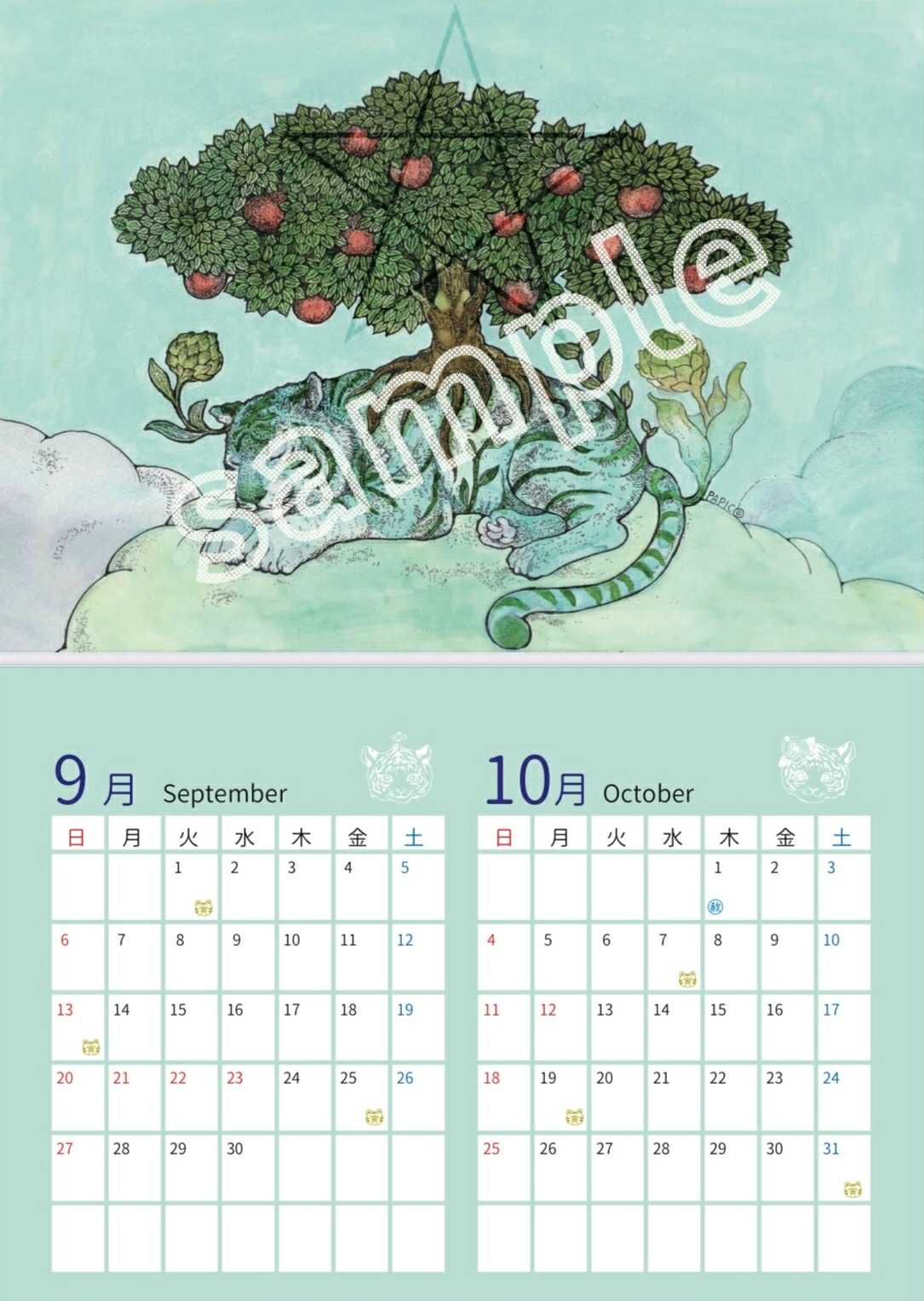 これまでの “イラストの上に日付を重ねる” 形式から一新し、イラストページとカレンダー(予定を書き込むスペース)を分けたデザイン に生まれ変わりました。日常使いとしても便利にお使い頂けます。