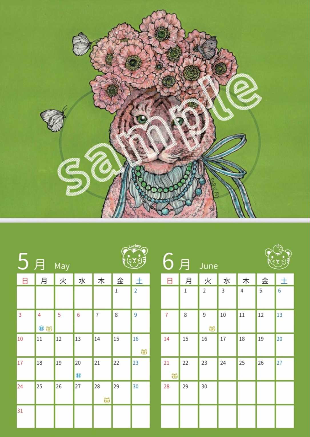 幸運の虎「ラッキータイガー」のカレンダー2026年版です。